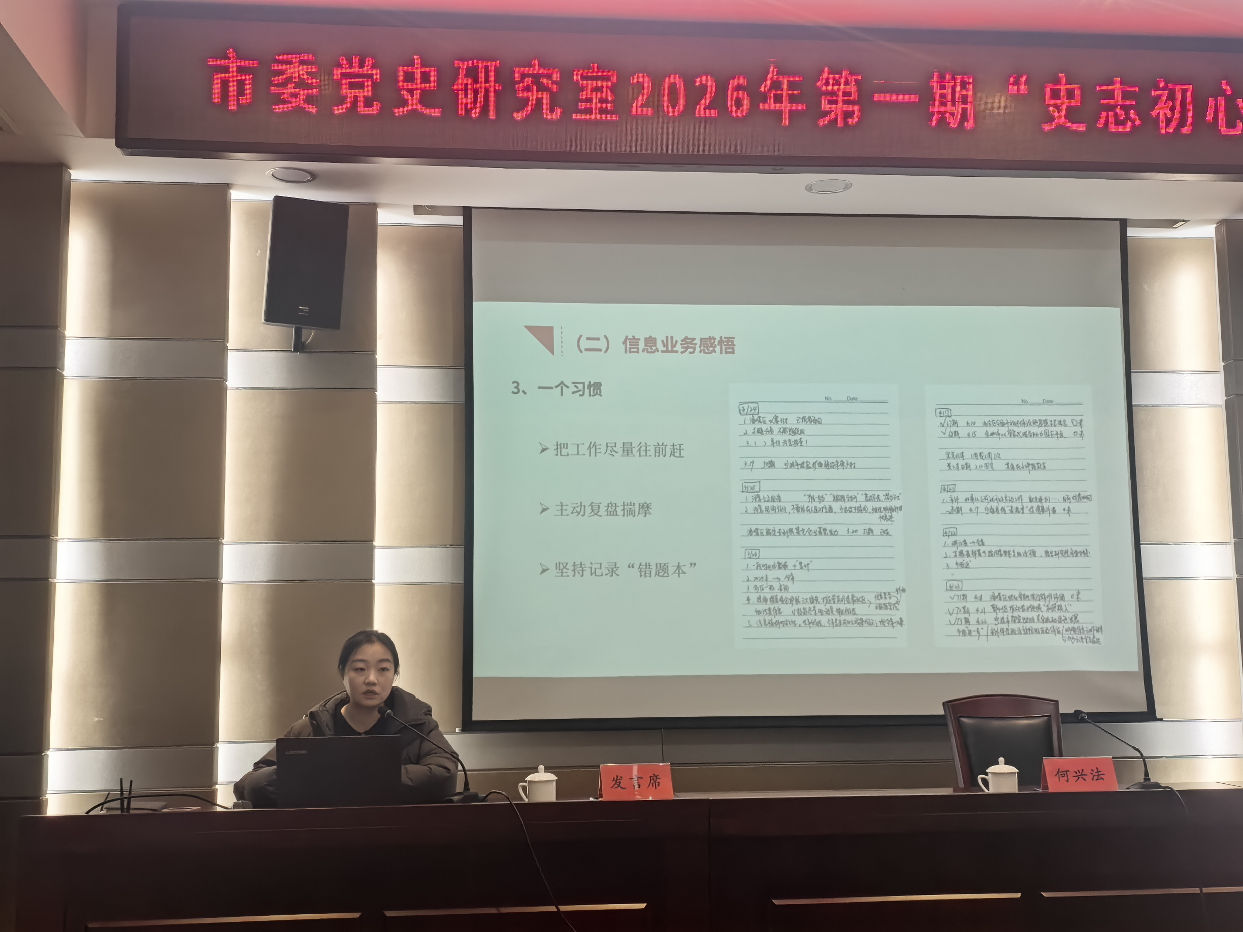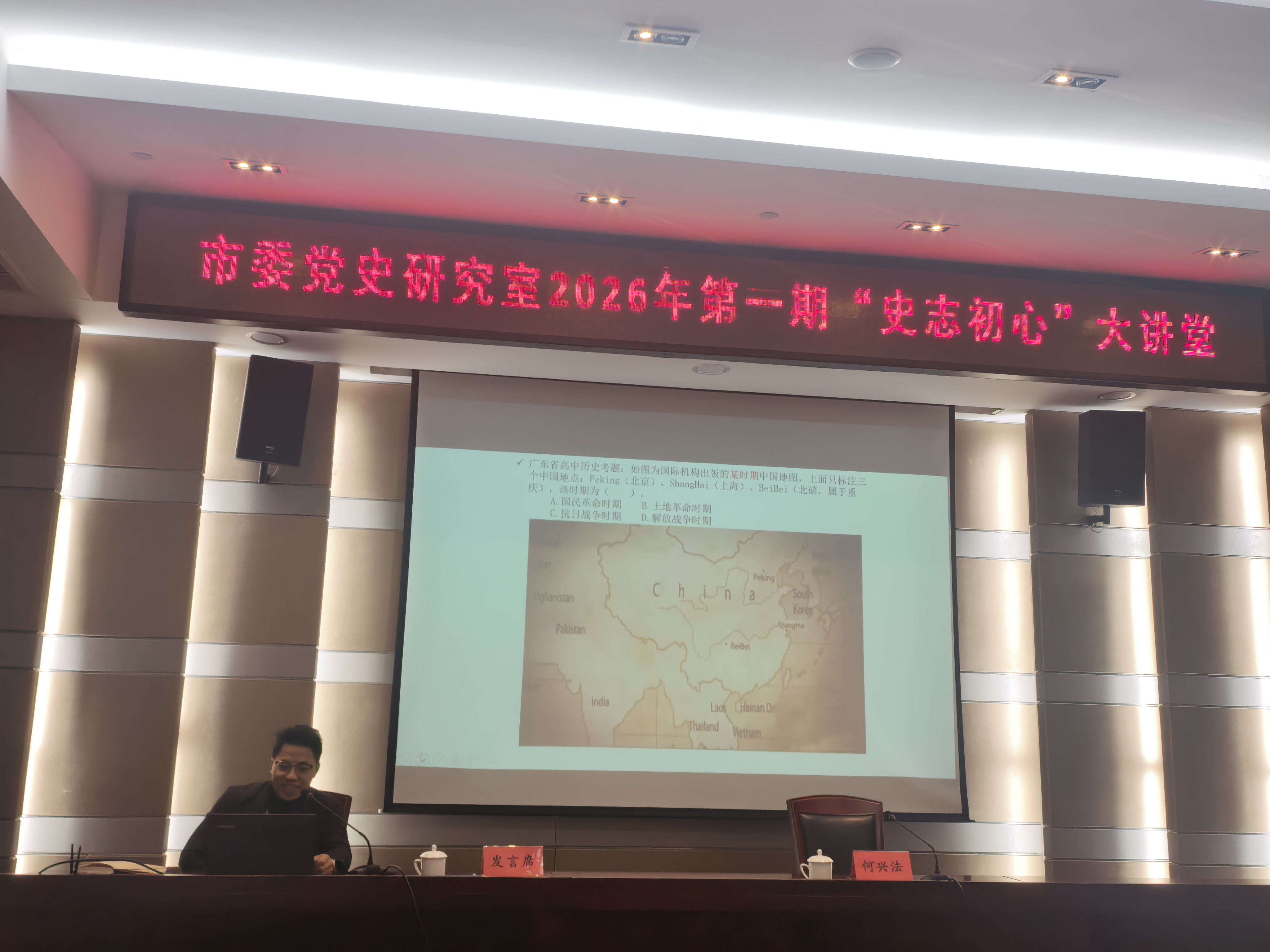 1月26日下午,宁波市委党史研究室举行2026年第一期“史志初心”大讲堂。市委党史研究室主任何兴法主持并讲话。市委政研室副主任、厅务会议成员钱春燕作专题辅导。2名党员干部代表交流发言。市委党史研究室、市史志研究中心全体干部参加活动。