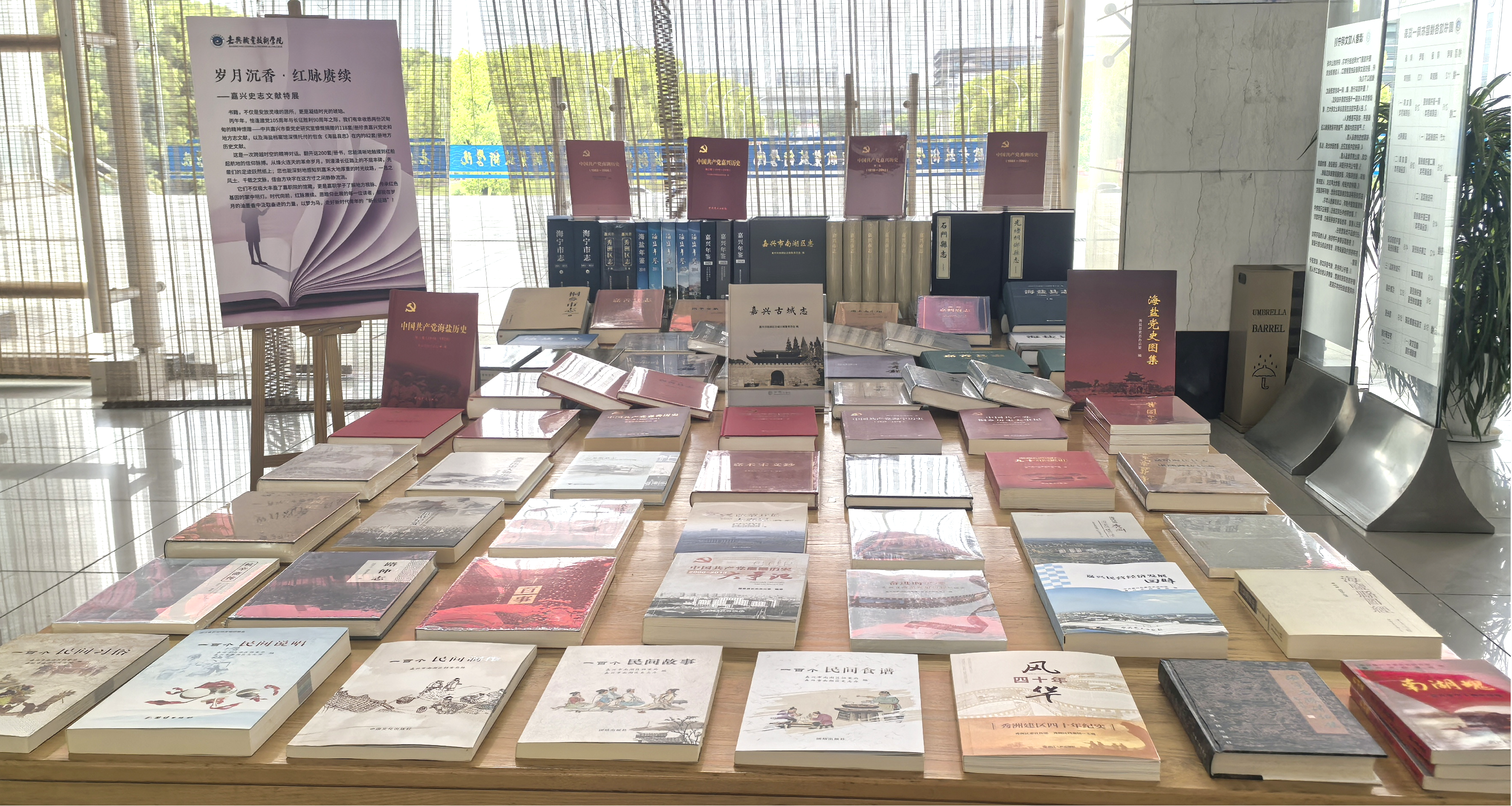 活动当天,由市委党史研究室联合嘉兴职业技术学院打造的“岁月沉香·红脉赓续——嘉兴史志文献特展”在学院图书馆正式开展。此次特展集中展出200余册(套)嘉兴史志文献,既有《铁血荣光——嘉兴抗美援朝老战士口述实录》《嘉兴高质量发展研究系列丛书——战略引航二十年》等党史研究著作,也涵盖《简读嘉兴》等多部地方历史文化普及读物。这批书籍不仅丰富了学校图书馆的馆藏资源,也为广大师生搭建起品读嘉兴红色历史、感悟地方文脉底蕴的优质平台,让师生在书香浸润中深切感受嘉兴“两个文化”的源远流长与时代价值。